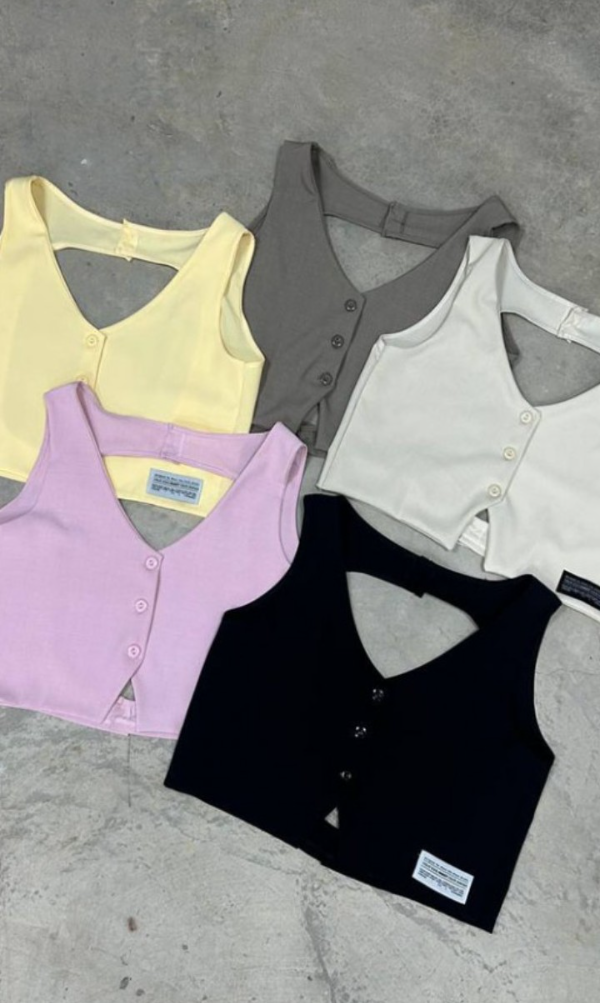 Chaleco sastrero con botones en el frente y espalda descubierta