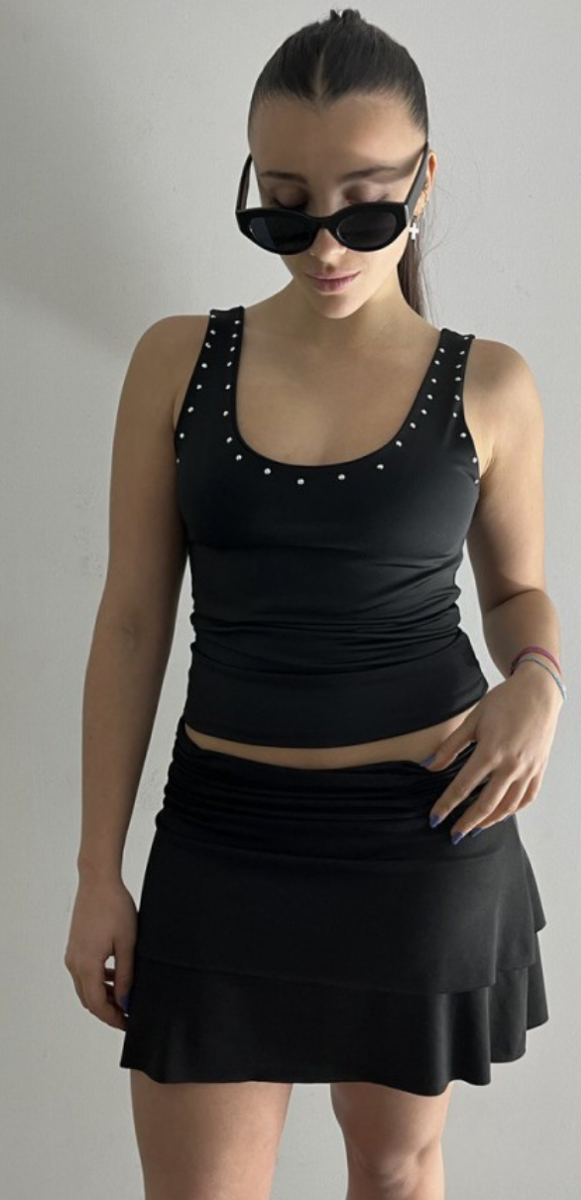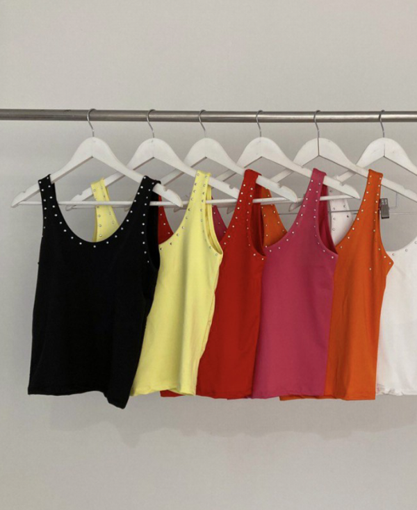 Musculosa de microfibra con tachas en cuello y sisas