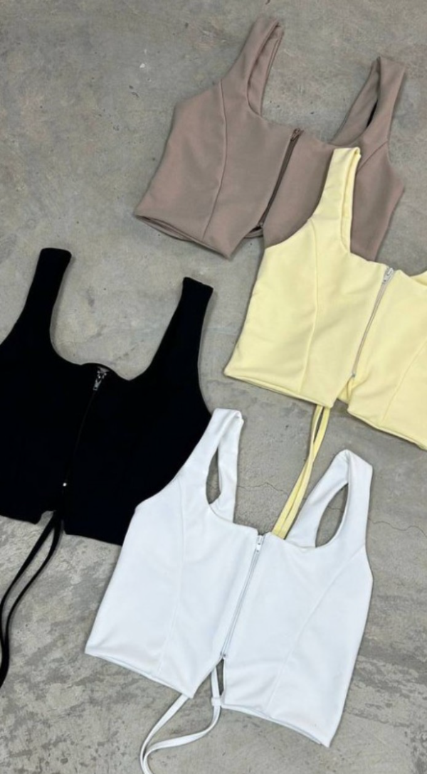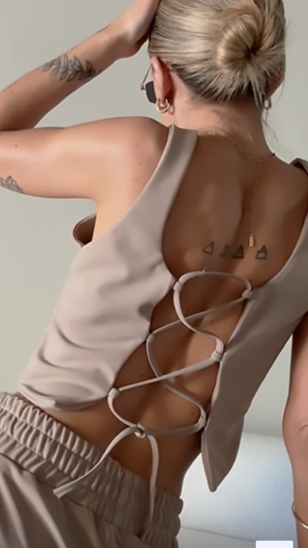 Top sastrero de crepé con cierre en el frente y tiras regulables en la espalda