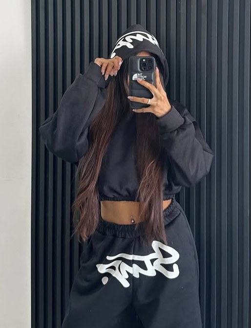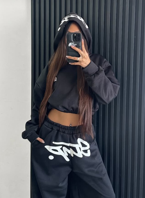 Buzo de friza con capucha, estampa y elástico en la cintura