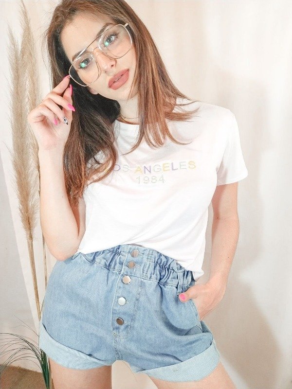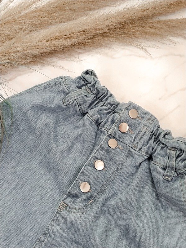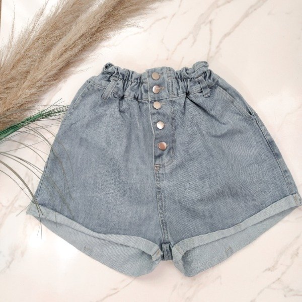 Short de jean rigido, con elástico en la cintura.