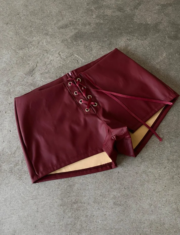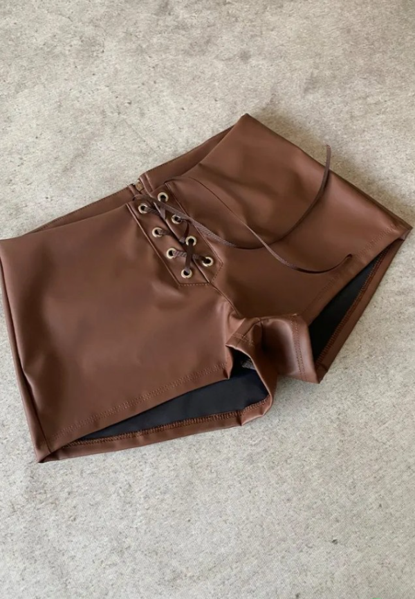 Short cuerina con cordón en el frente. Tiro medio
