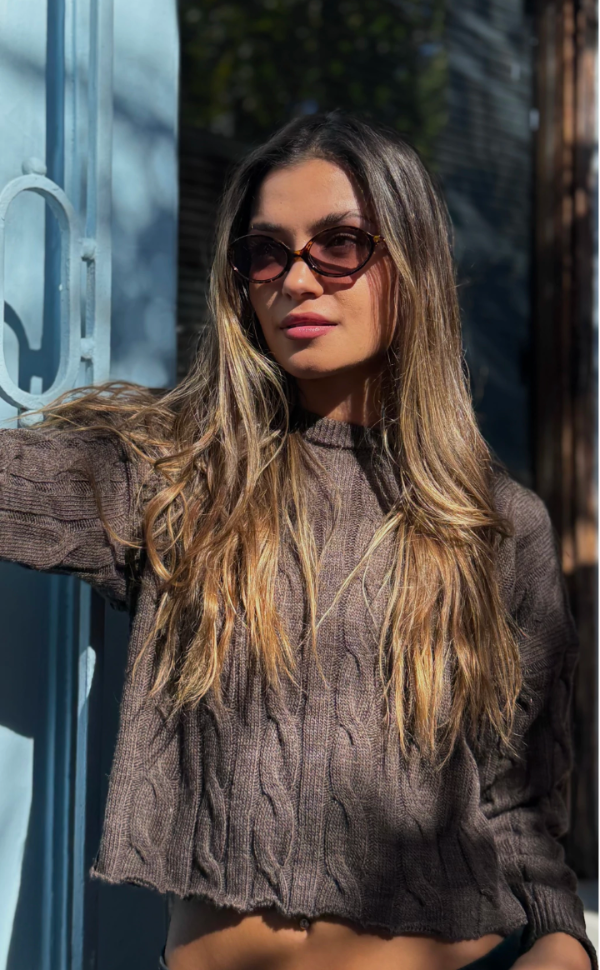 Sweater cuello redondo con motivo de trenzas en toda la prenda y espalda abierta