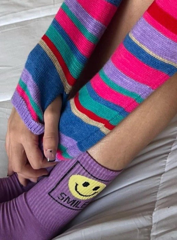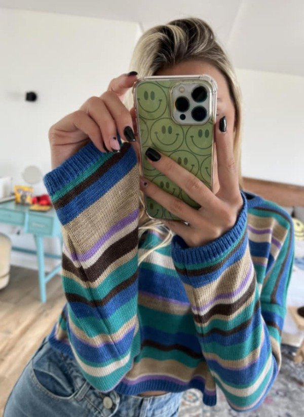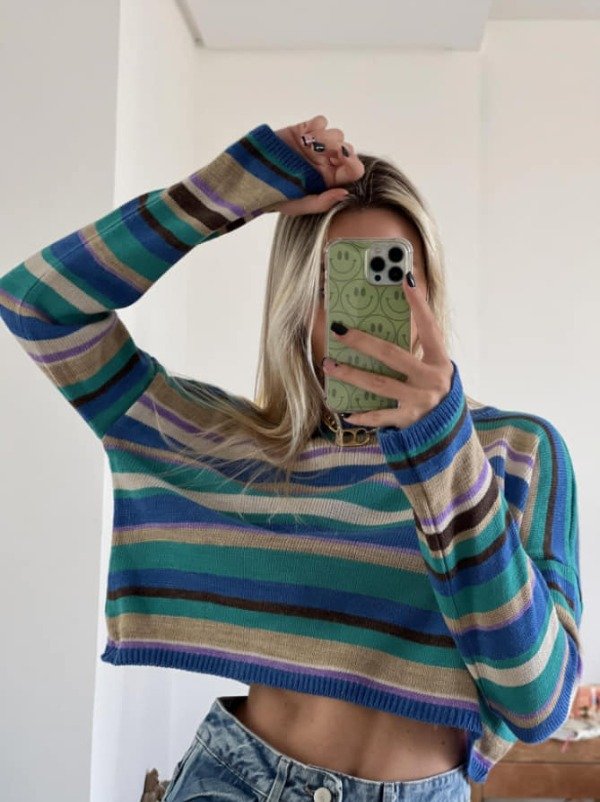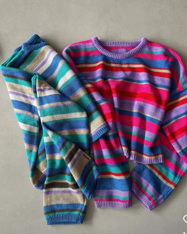 Sweater rayado en dos combinaciones con ojal para pasar dedo