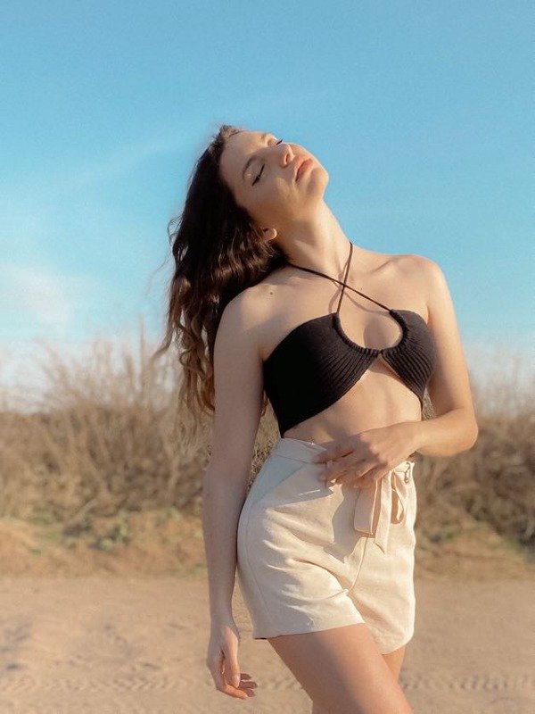 Top tejido en hilo de algodón con cordón de ajuste